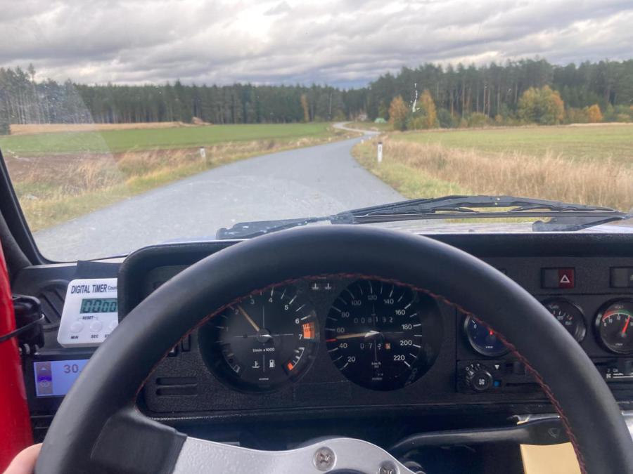 Roland navigiert perfekt und das Schnittfahren klappt super. Selbst auf schwieriger Schotterstrecke hielt der Golf einen 50er Schnitt.